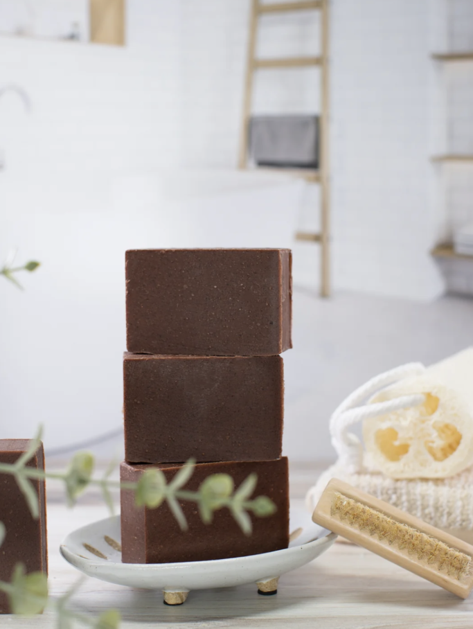 Saponified Palm Oil, Saponified Coconut Oil, Saponified Olive Oil, Saponified Shea Butter, Water, Goat’s Milk, Geranium Essential Oil, Lavender Essential Oil, Patchouli Essential Oil, Clove Bud Essential Oil, Rosehip Oil, Rosehip Powder